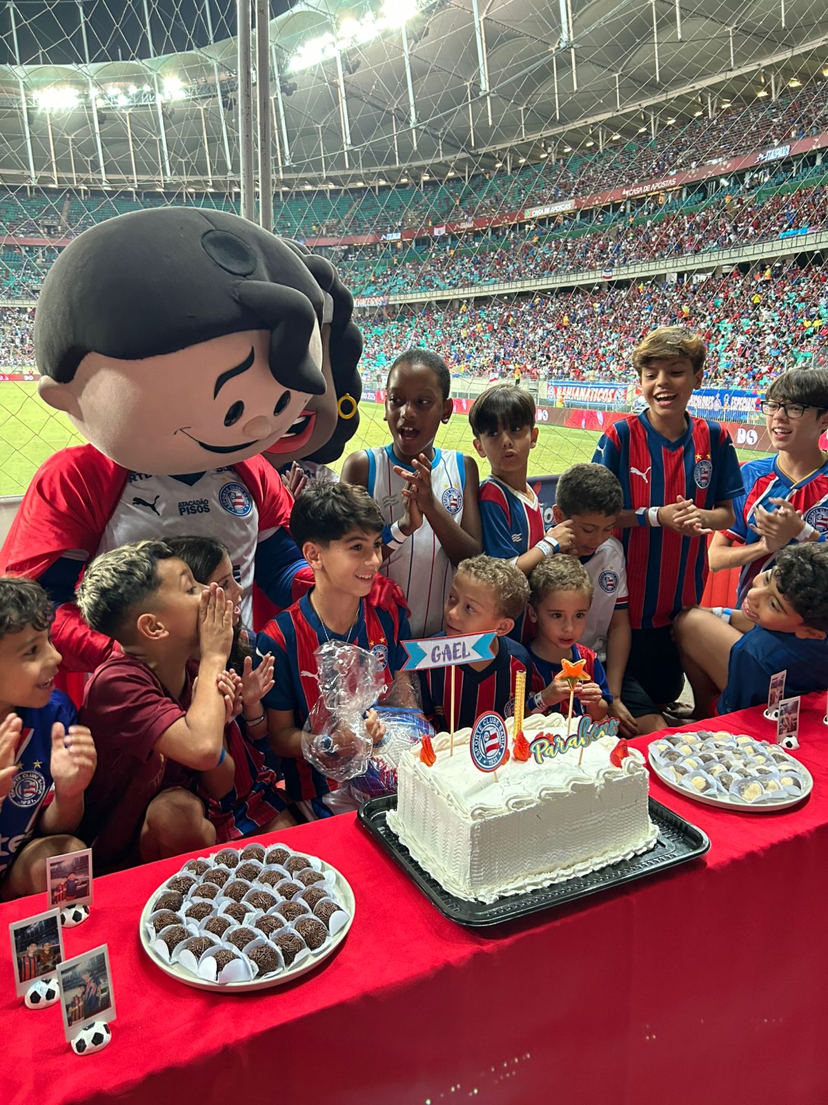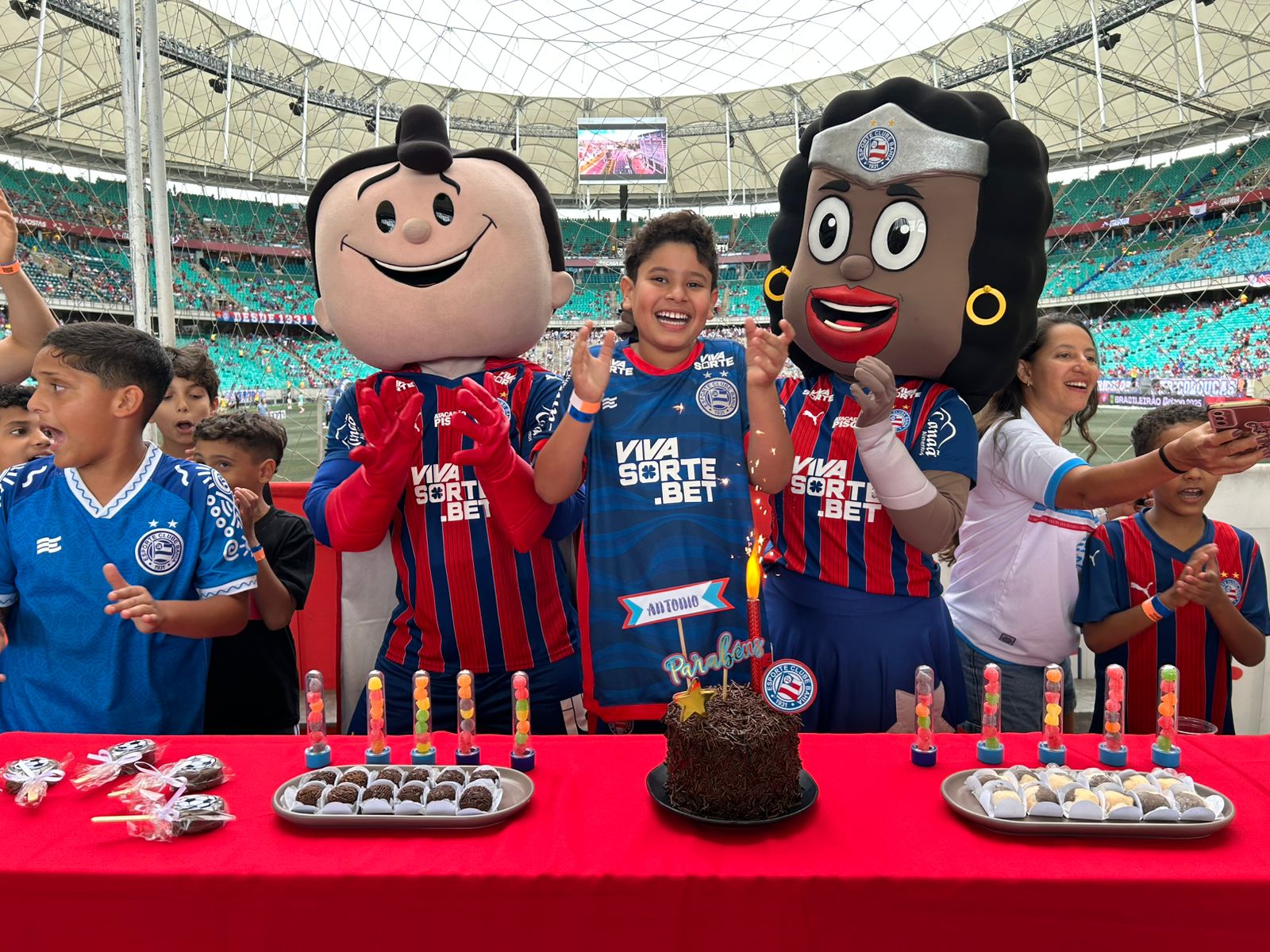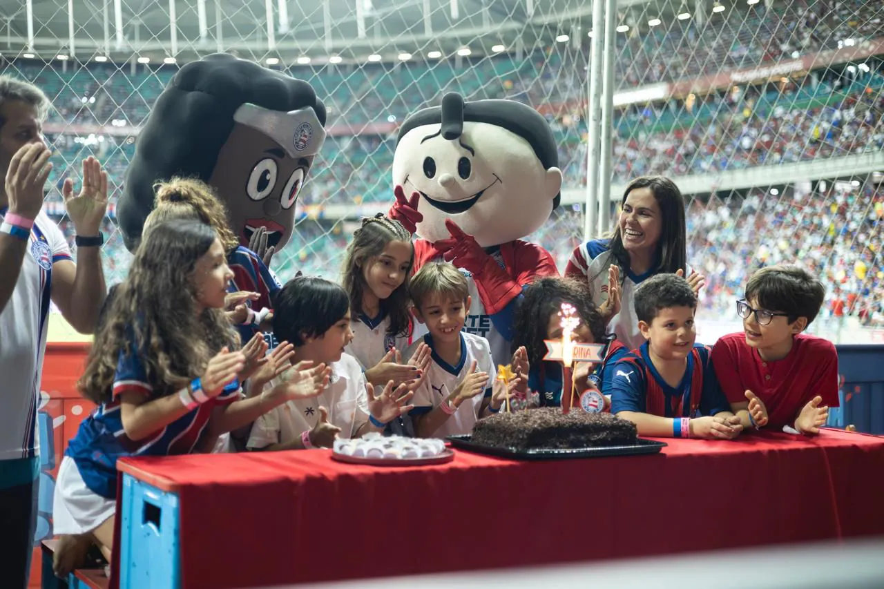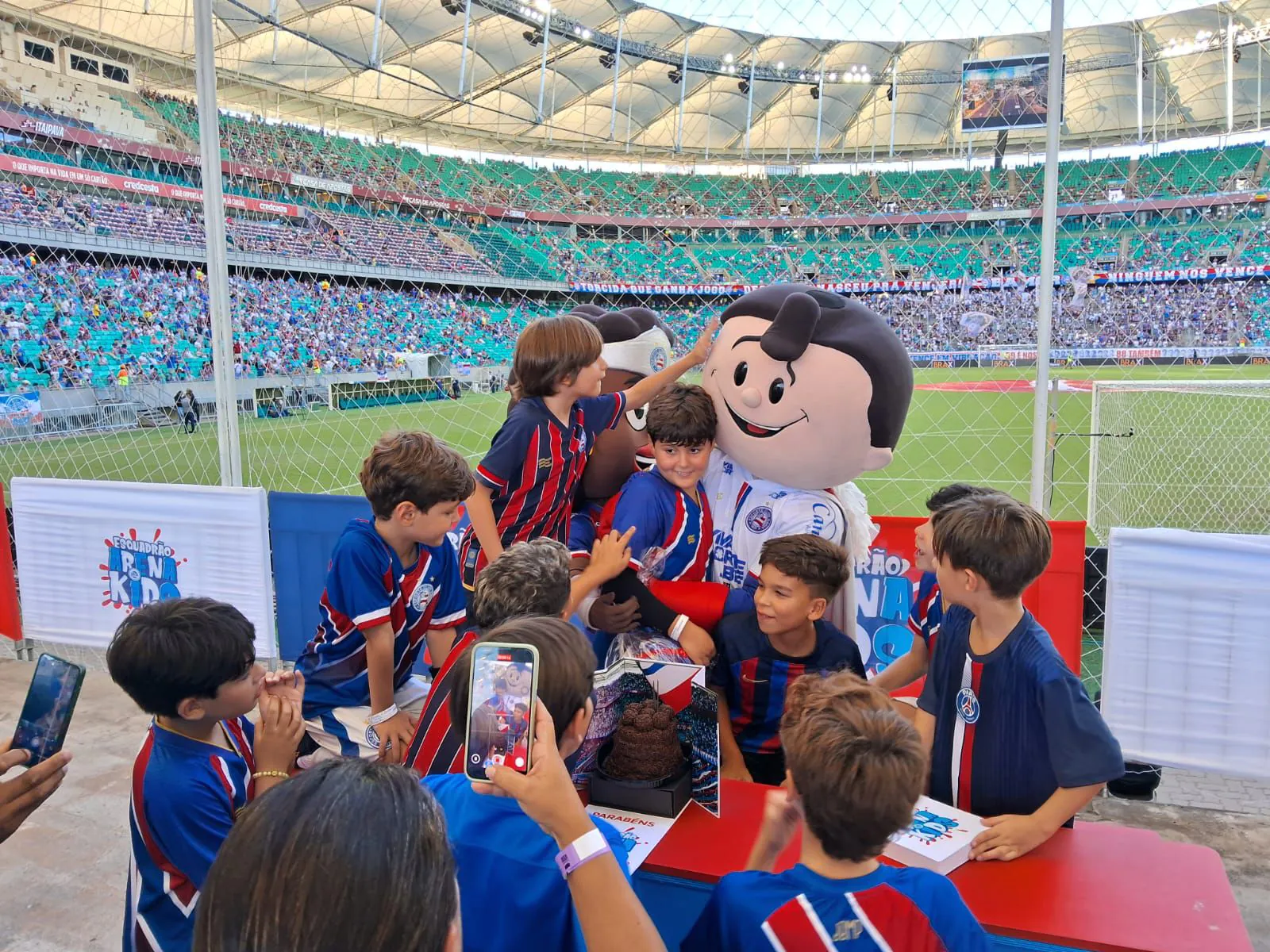 No Pacote 1, o aniversariante tem a chance de entrar em campo com os jogadores do Bahia antes do início do jogo, uma experiência inesquecível para os pequenos torcedores.