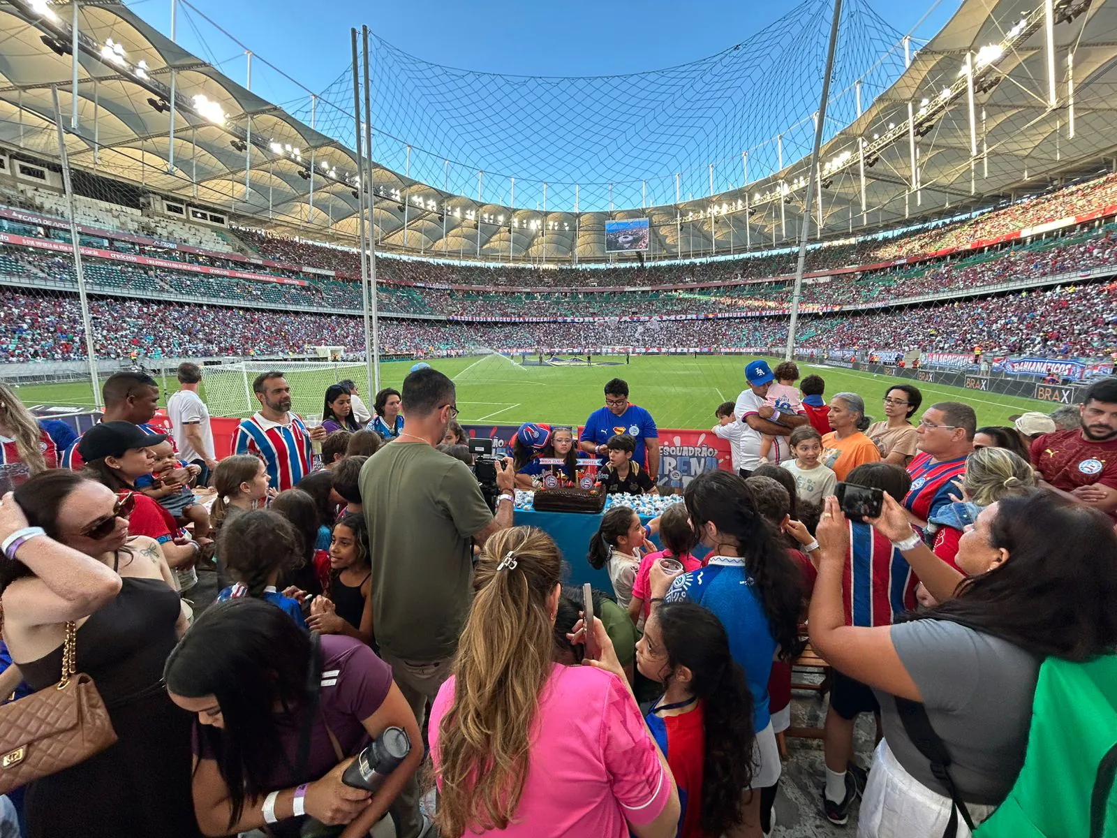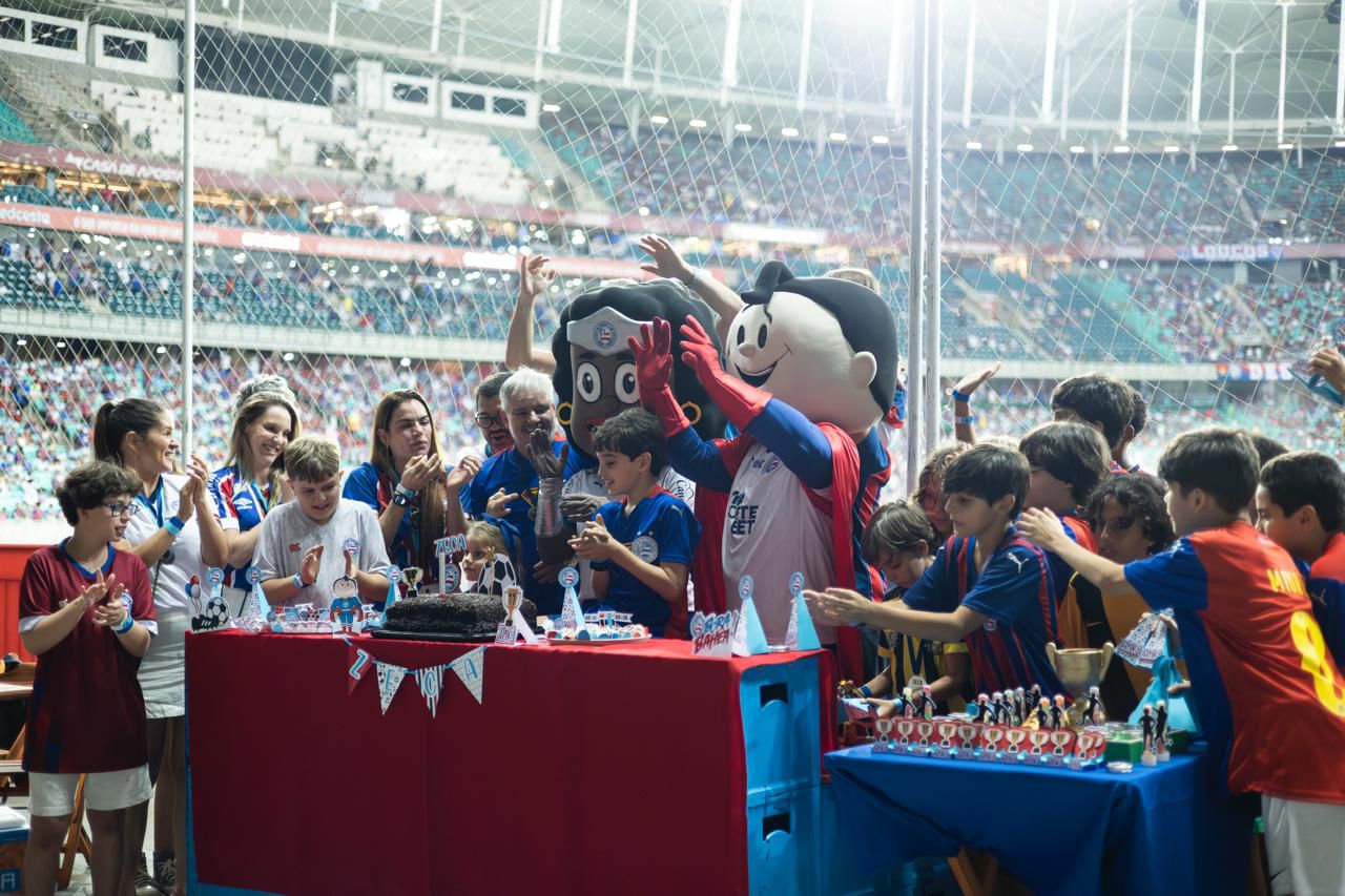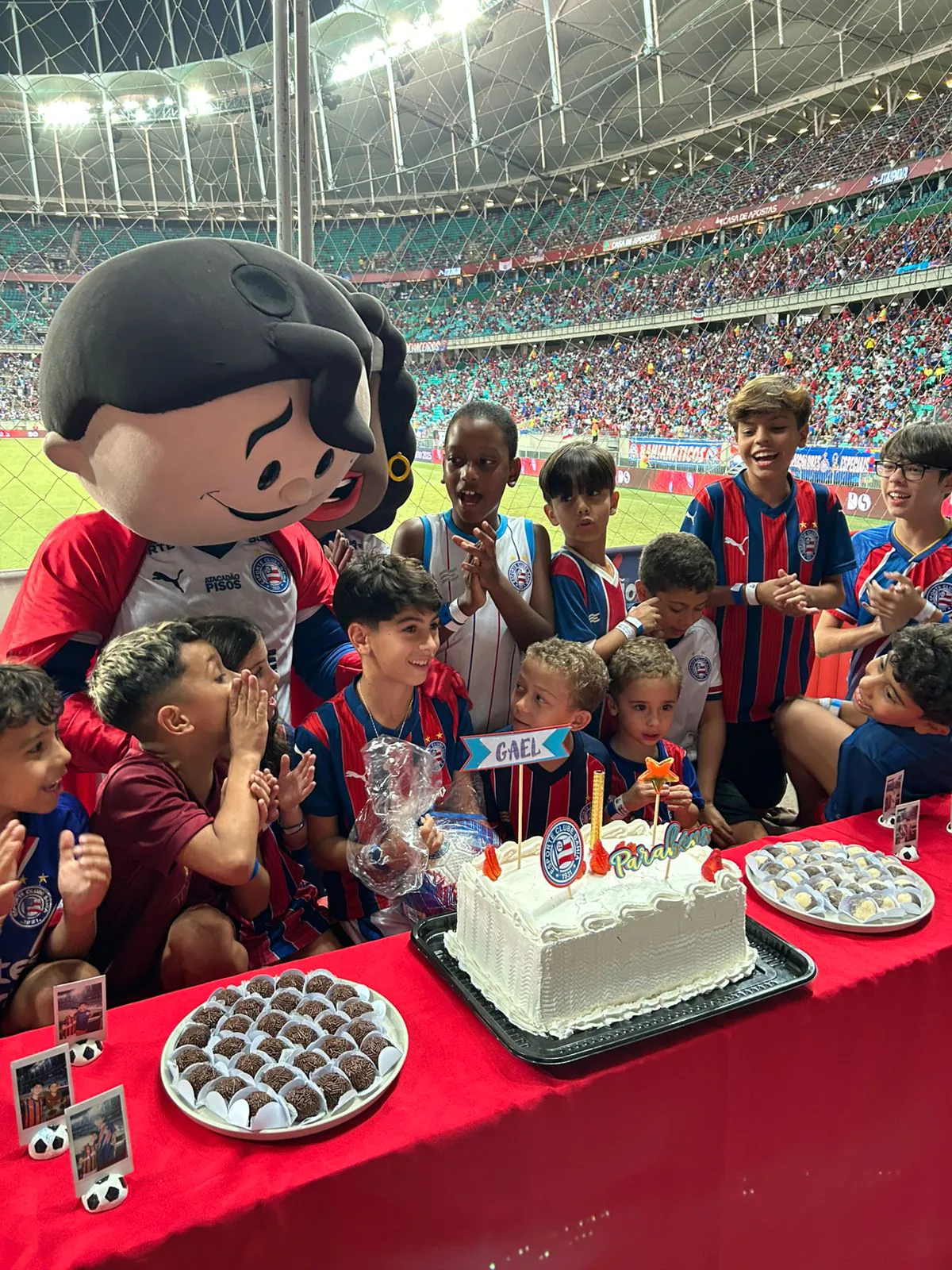 No Pacote 1, o aniversariante tem a chance de entrar em campo com os jogadores do Bahia antes do início do jogo, uma experiência inesquecível para os pequenos torcedores.