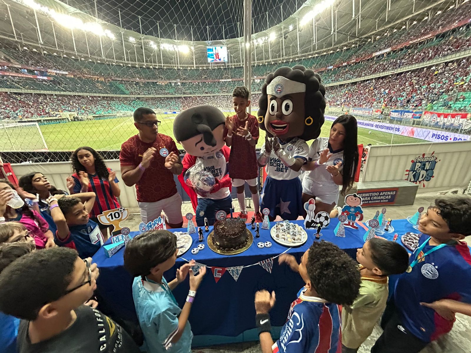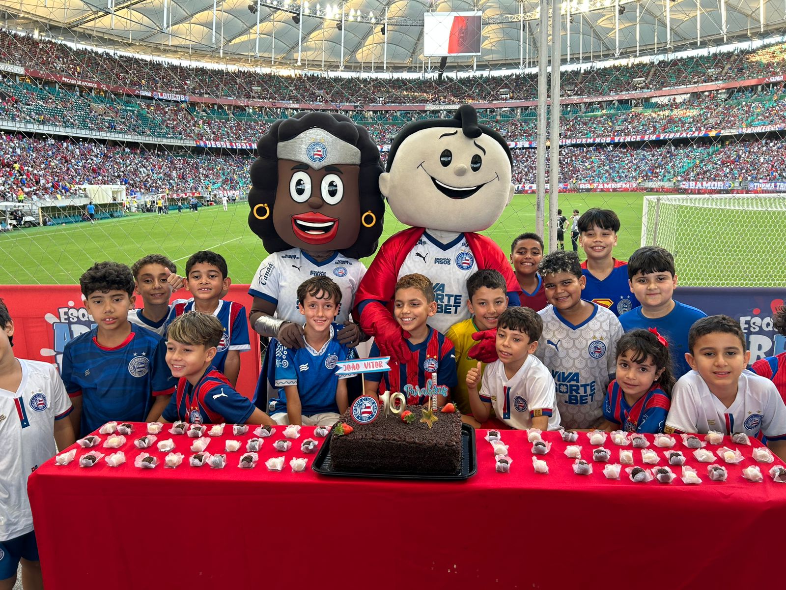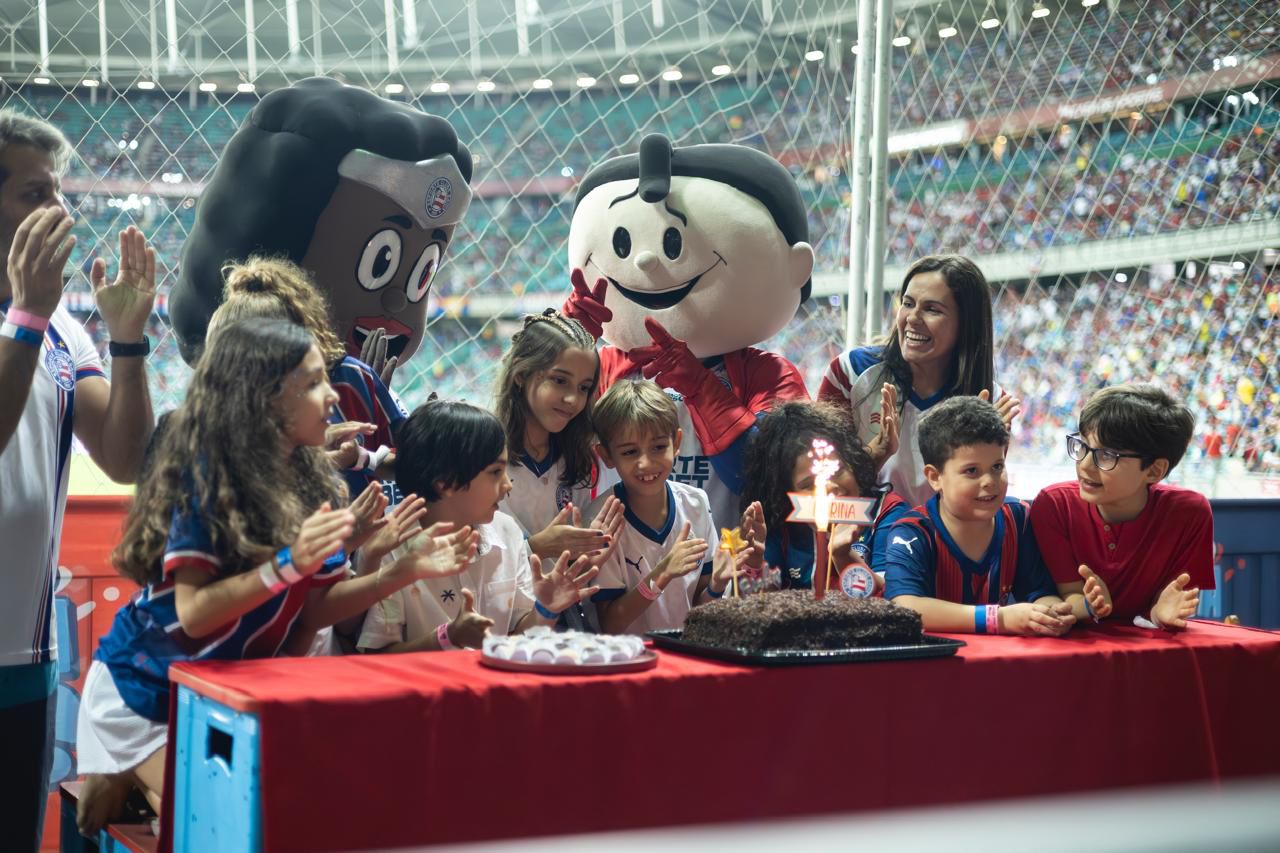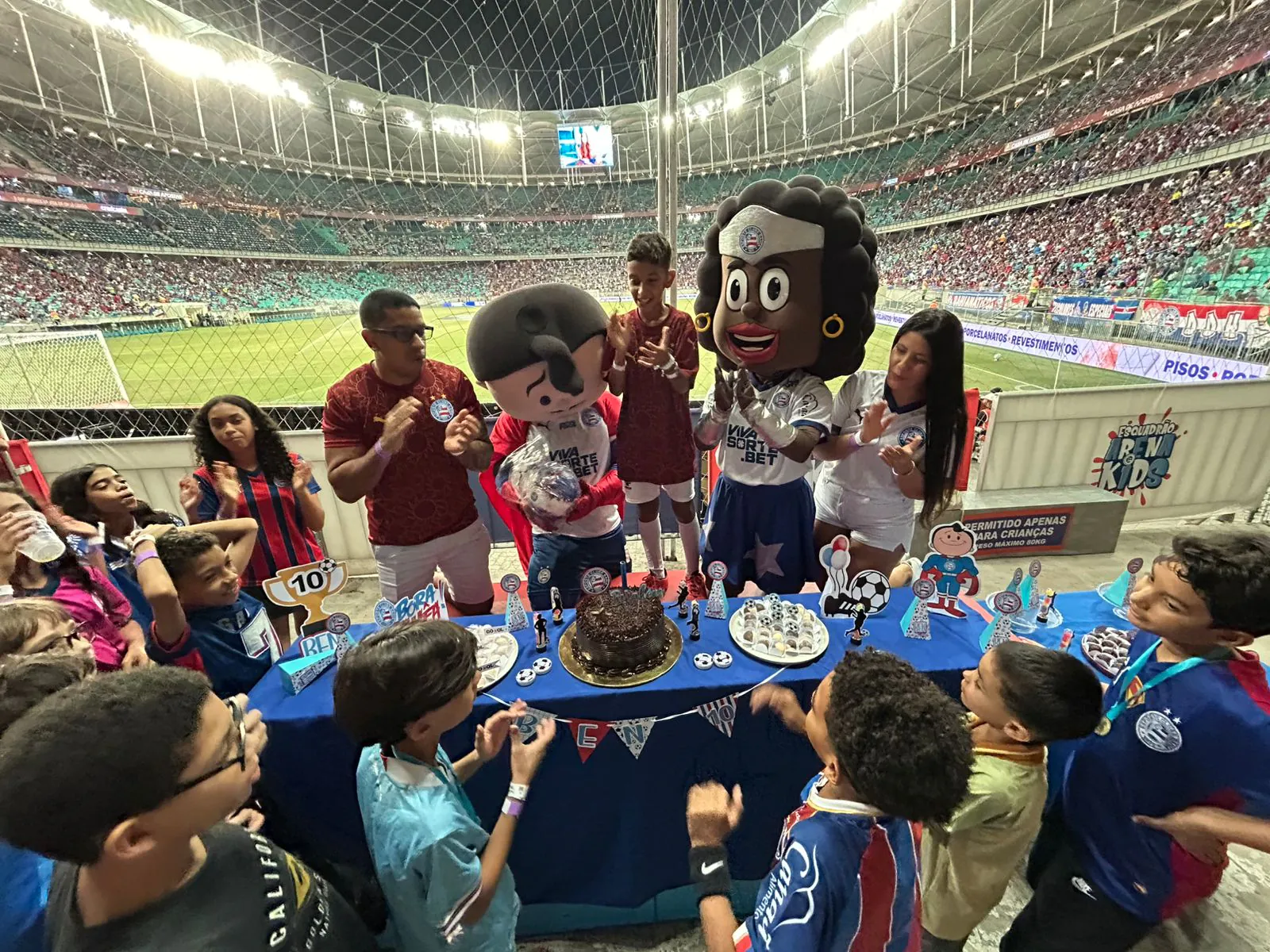 No Pacote 1, o aniversariante tem a chance de entrar em campo com os jogadores do Bahia antes do início do jogo, uma experiência inesquecível para os pequenos torcedores.