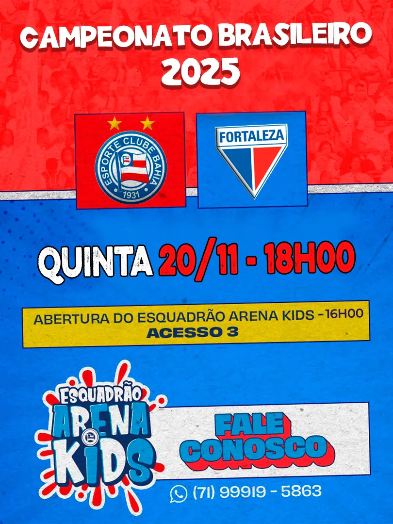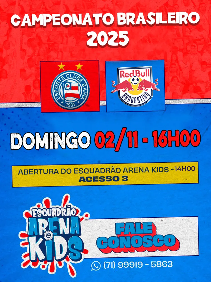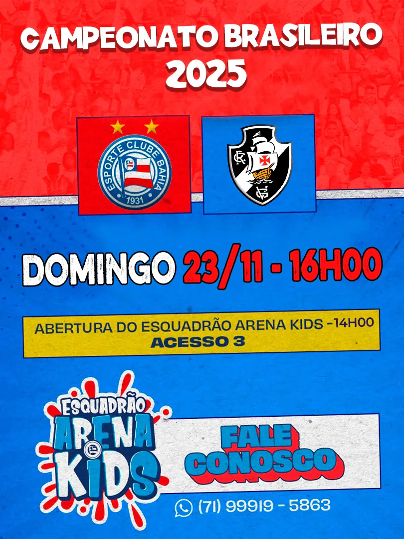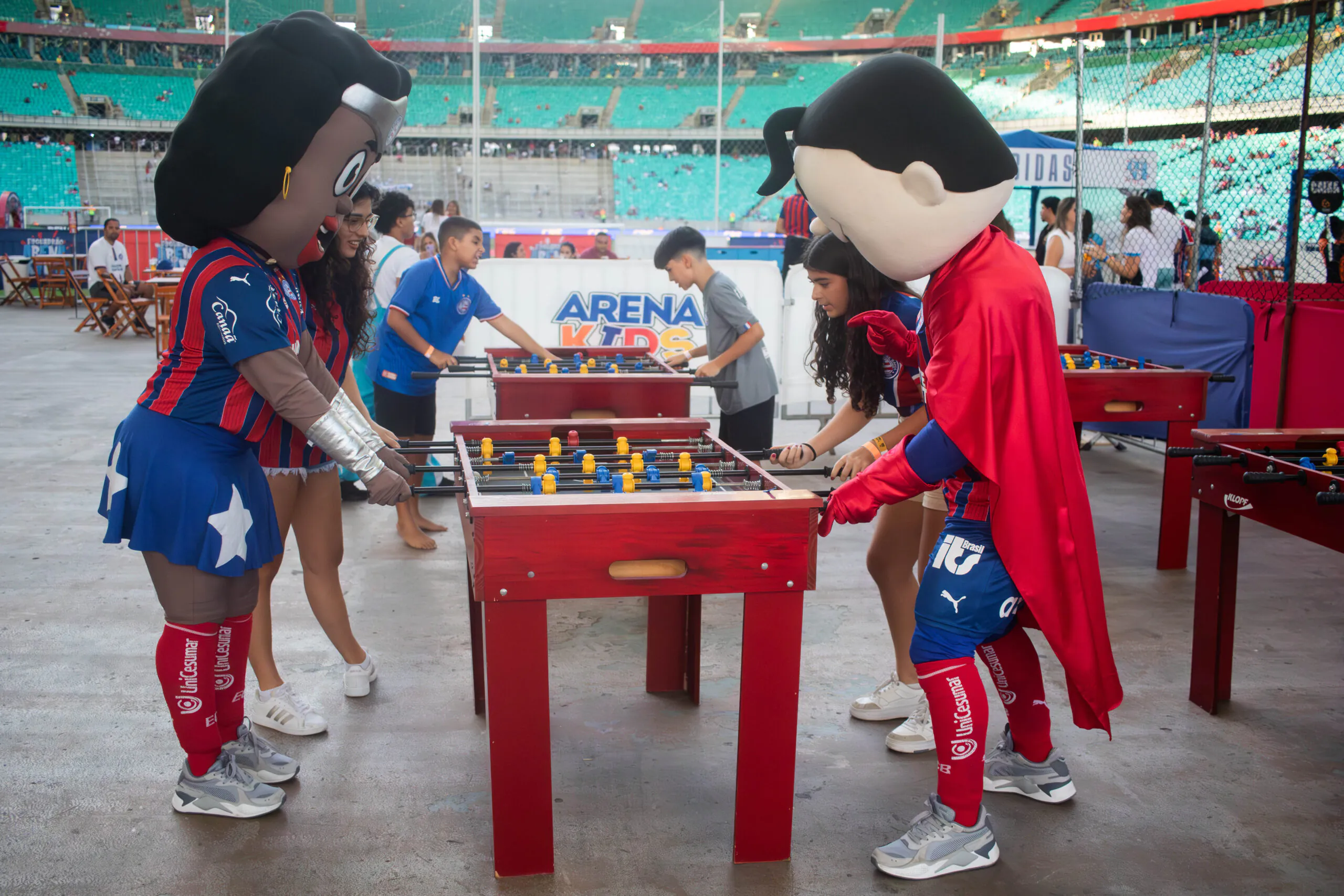 Viva uma festa inesquecível dentro do camarote com um buffet completo, brinquedos e monitores que garantem a diversão o tempo todo. O aniversariante terá uma surpresa única: entrar em campo com os jogadores do Bahia e celebrar o parabéns ao lado do mascote do time. Uma experiência mágica para você e seus convidados, com direito a bolo, docinhos e uma vista privilegiada do jogo.